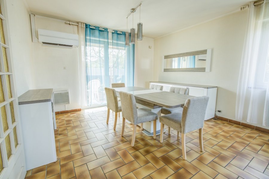 À l'extérieur, vous profiterez d'une agréable terrasse en partie couverte et exposée SUD, donnant sur le jardin